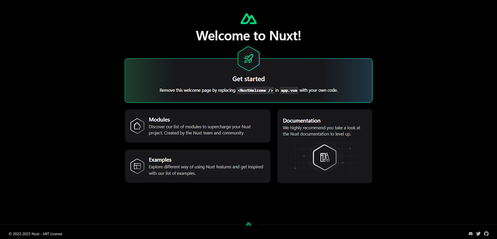 Visit http://localhost:3000 in your browser, and you should see the Nuxt welcome page below: