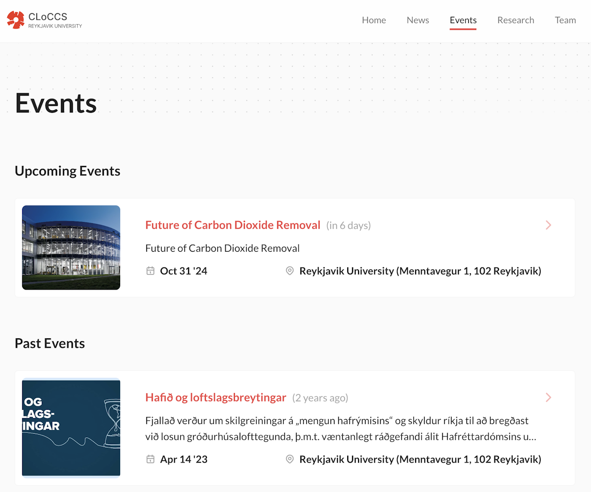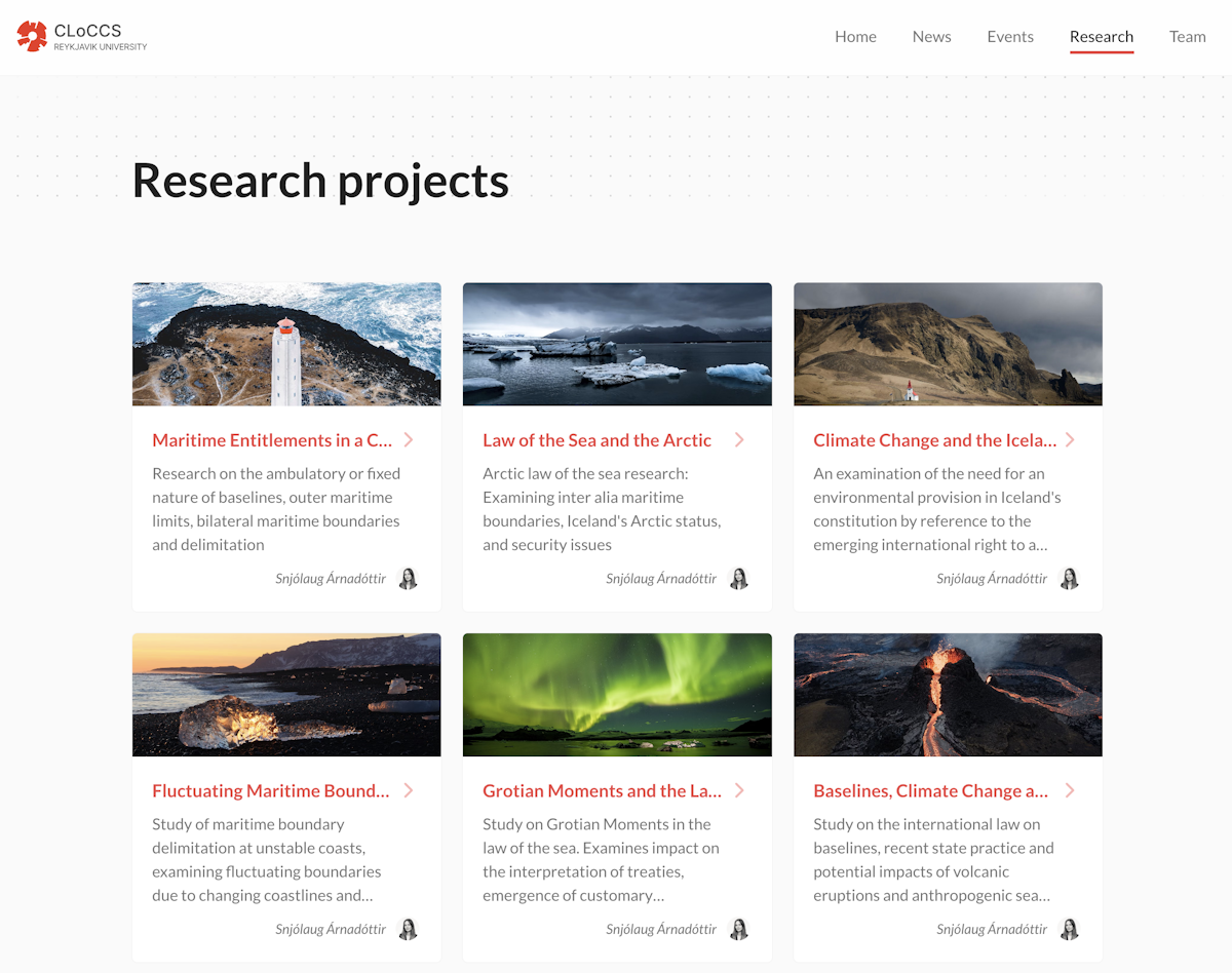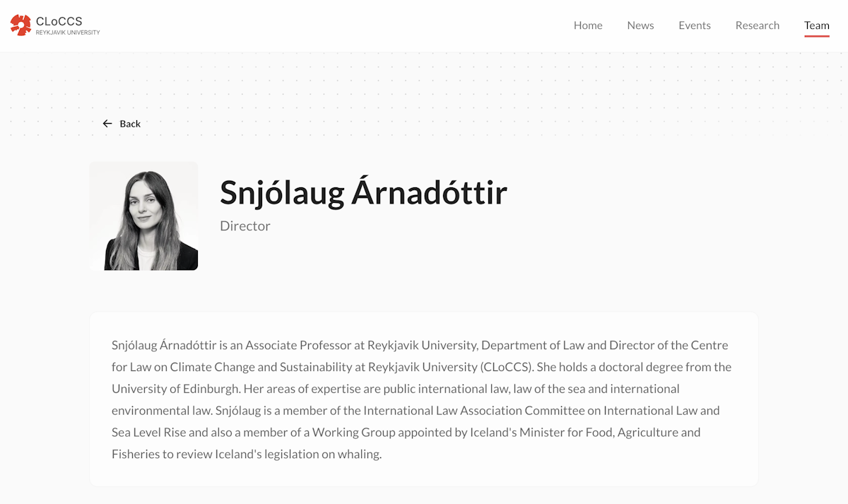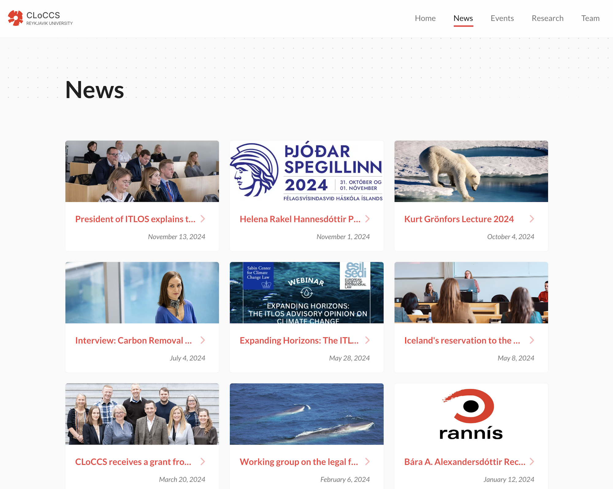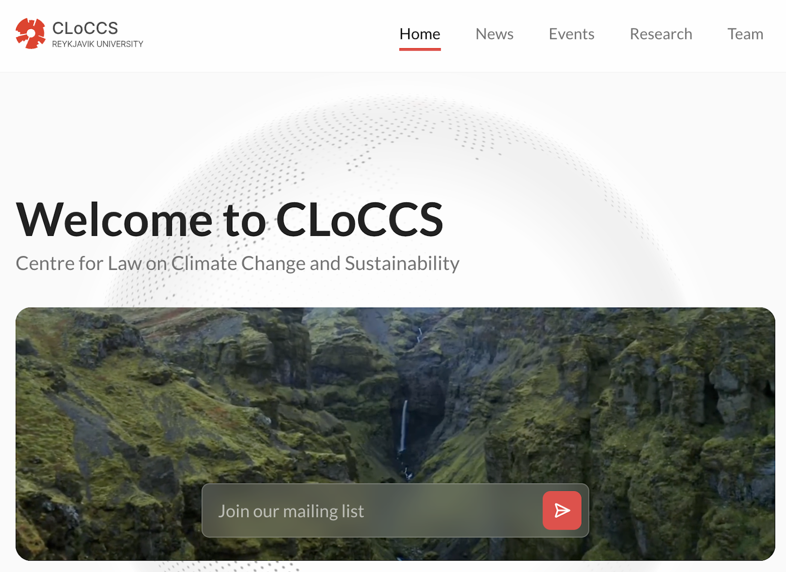 A website for CLoCCS, Centre for Law on Climate Change and Sustainability