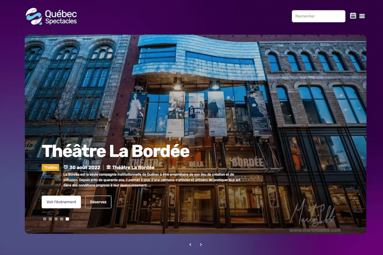 QuébecSpectacles is a complete directory of events for the Québec region. Events and shows are updated daily thanks to the automation and simplicity of DatoCMS. Each event can be found using the search, category or map filters.