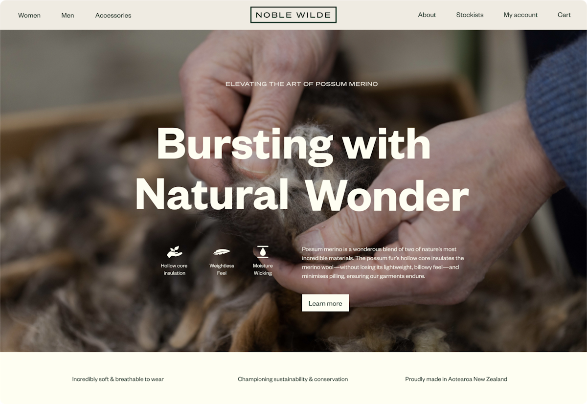 A narrative ecommerce website for one of New Zealand's leading clothing manufacturers.