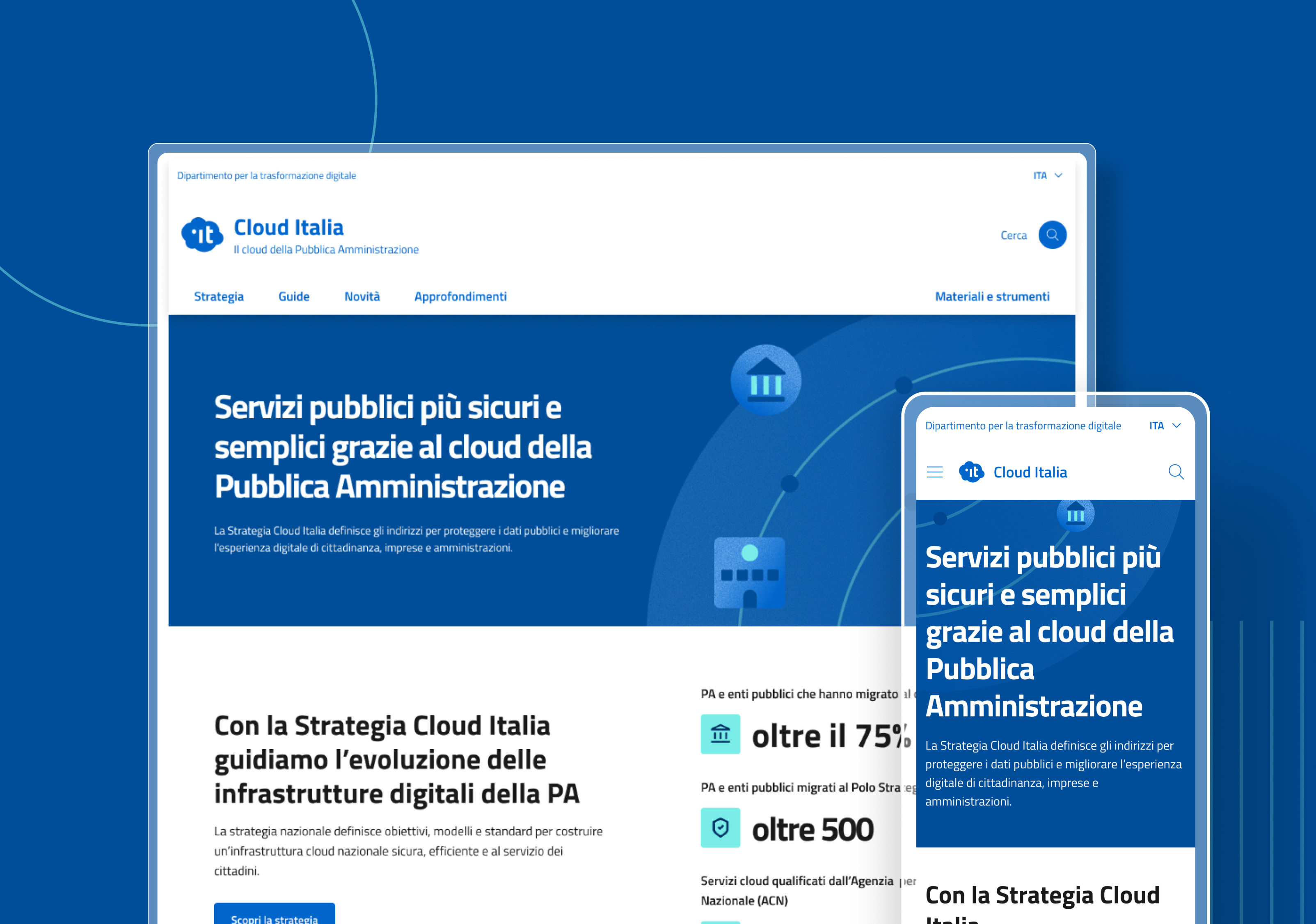 The Cloud Italia website was redesigned to support Italian Public Administrations (PA) and their technology providers in planning, managing, and sustaining cloud migration. The platform provides the guidance, tools, and best practices to support organizations at every stage: from those just starting their journey to those consolidating and maintaining their infrastructures beyond the PNRR timeline.