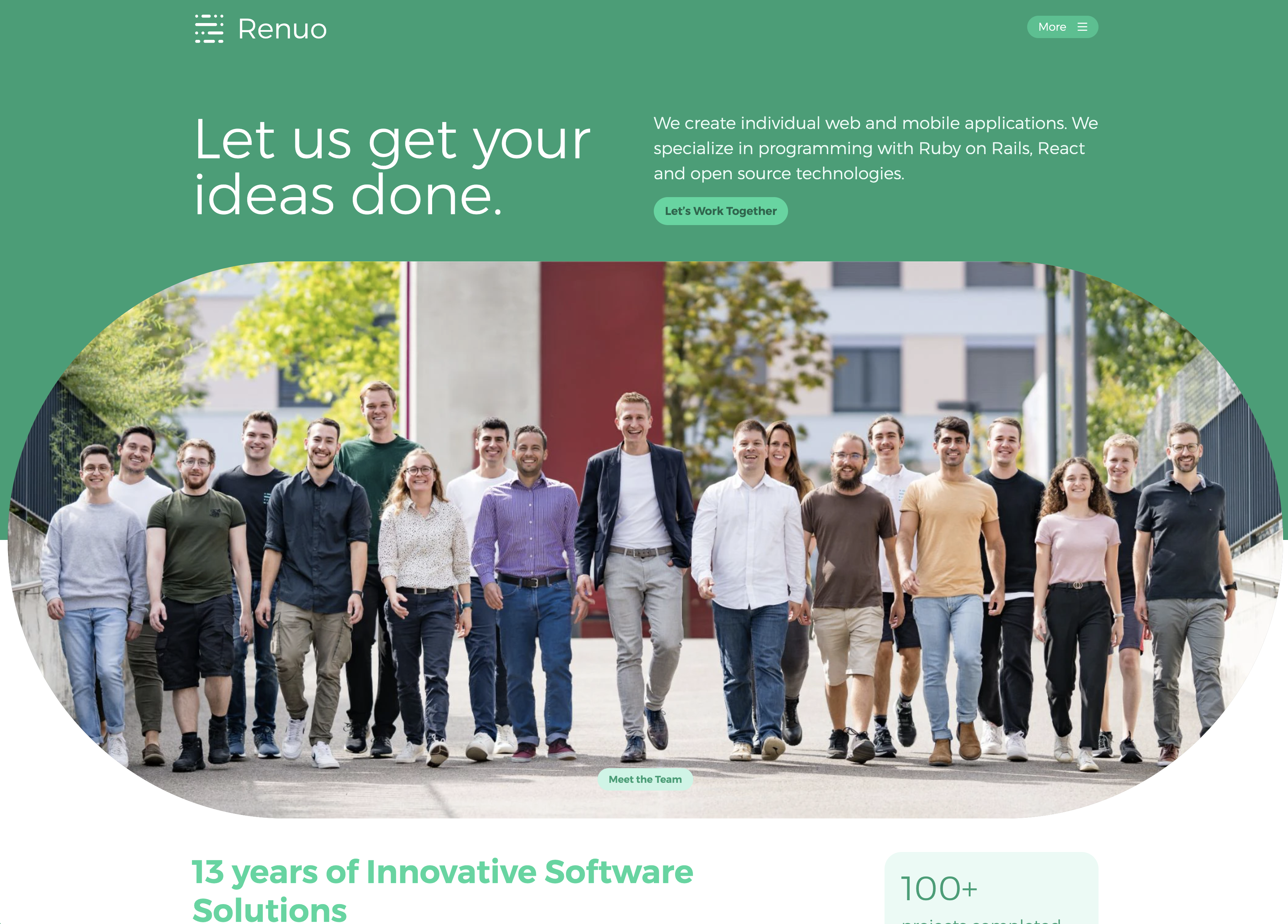 For the Renuo website, we brought a modern design to life, focusing on delivering an exceptional user experience and seamless functionality.