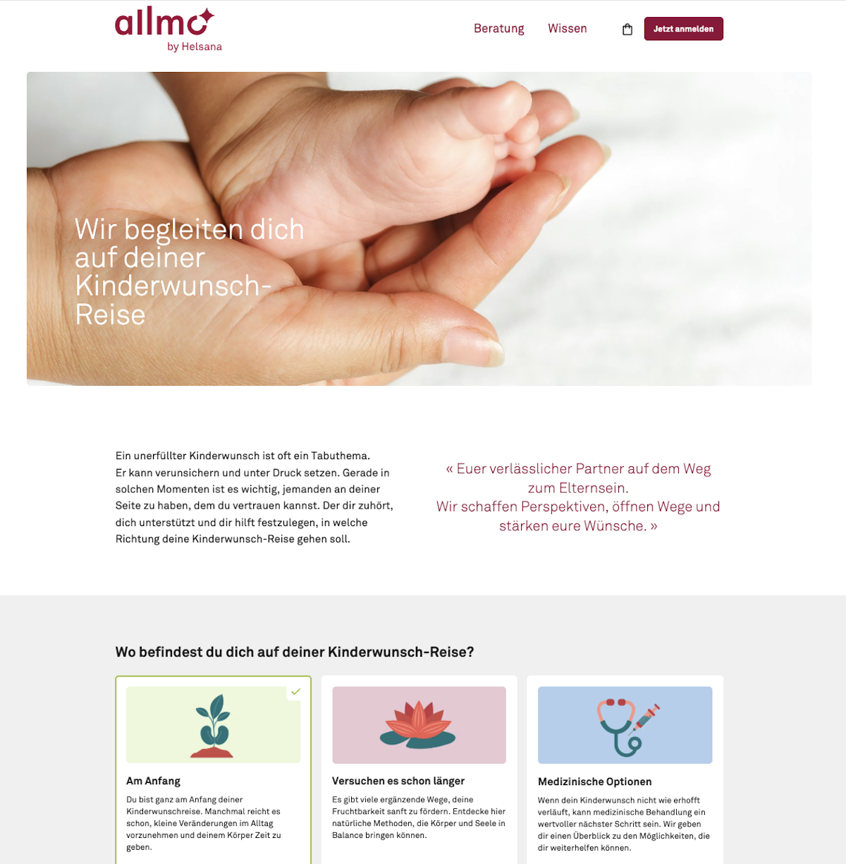allmo is a comprehensive digital health and prevention platform launched by Helsana, to support users across life's emotional and physical challenges—independent of insurance status. Targeting individuals and companies, it delivers personalized, accessible solutions for fertility journeys, pregnancy, mental resilience, and overall well-being. Key modules include the "Kinderwunsch-Reise" (fertility support with expert advice and courses), pregnancy guidance (step-by-step resources and checklists), and the "Resilienz-Paket" for corporate employees—a fully anonymous, free toolkit addressing emotional stress through self-tests, webinars, coaching, resilience training, and phone consultations.