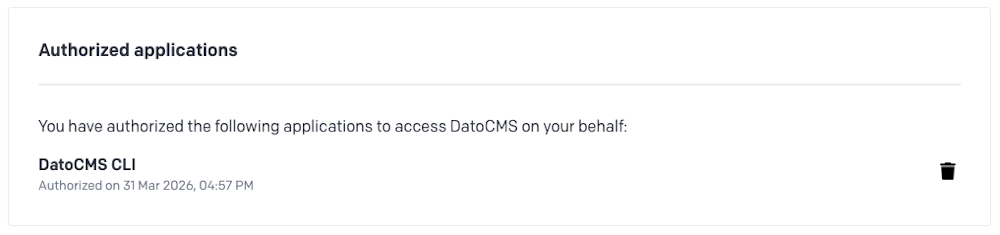 Setting up the DatoCMS CLI used to involve a clunky ritual of creating an API token in project settings, copying it, pasting it into an environment variable, and hoping you got it right. Repeat for every project. And since teams shared the same token, there was no way to tell who actually performed a given action in audit logs.